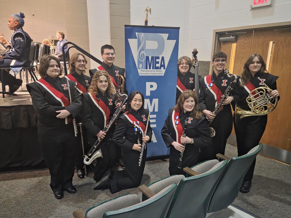 Once the band was seated, students applauded successful auditions for not only districts, but regions as well. Students are selected to PMEA ensembles based on their overall audition score. Indiana had six students with scores to qualify for the region festival: Audrey Yang, Lily Adams, Gabe Wilhelm, Aubrey Seale, Dylan Foulk, and Sage Anthe. This festival will be held in March at Northwestern HS.